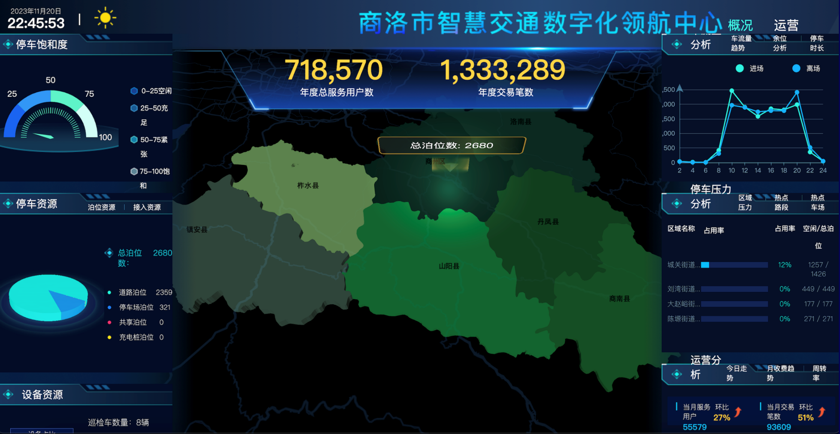 商洛市商州區(qū)智慧停車項目,一共管理了1800個泊位,2023年6月新增5臺巡檢車上線正式運營,750個泊位使用純視頻巡檢車模式,配置5個巡檢員、5個貼單員,巡檢員15分鐘一輪,視頻巡查車抓拍在場車輛信息經(jīng)路通物聯(lián)2.0(PaaS)透傳至業(yè)務(wù)平臺。視頻巡查車抓拍在場車輛信息作為停車收費證據(jù),后期正在規(guī)劃安裝地磁配合巡檢車使用。