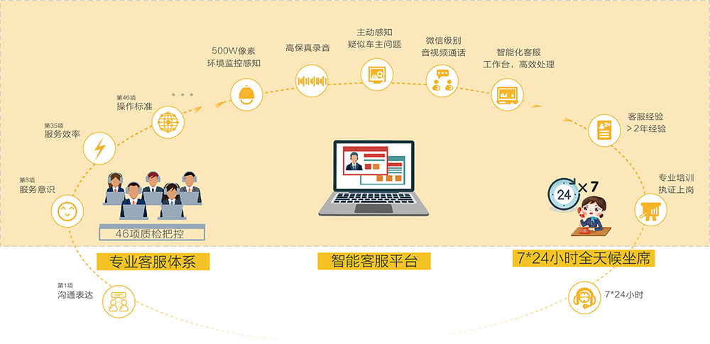 專業(yè)客服服務(wù)體系+智能客服平臺(tái)+7*24全天候坐席